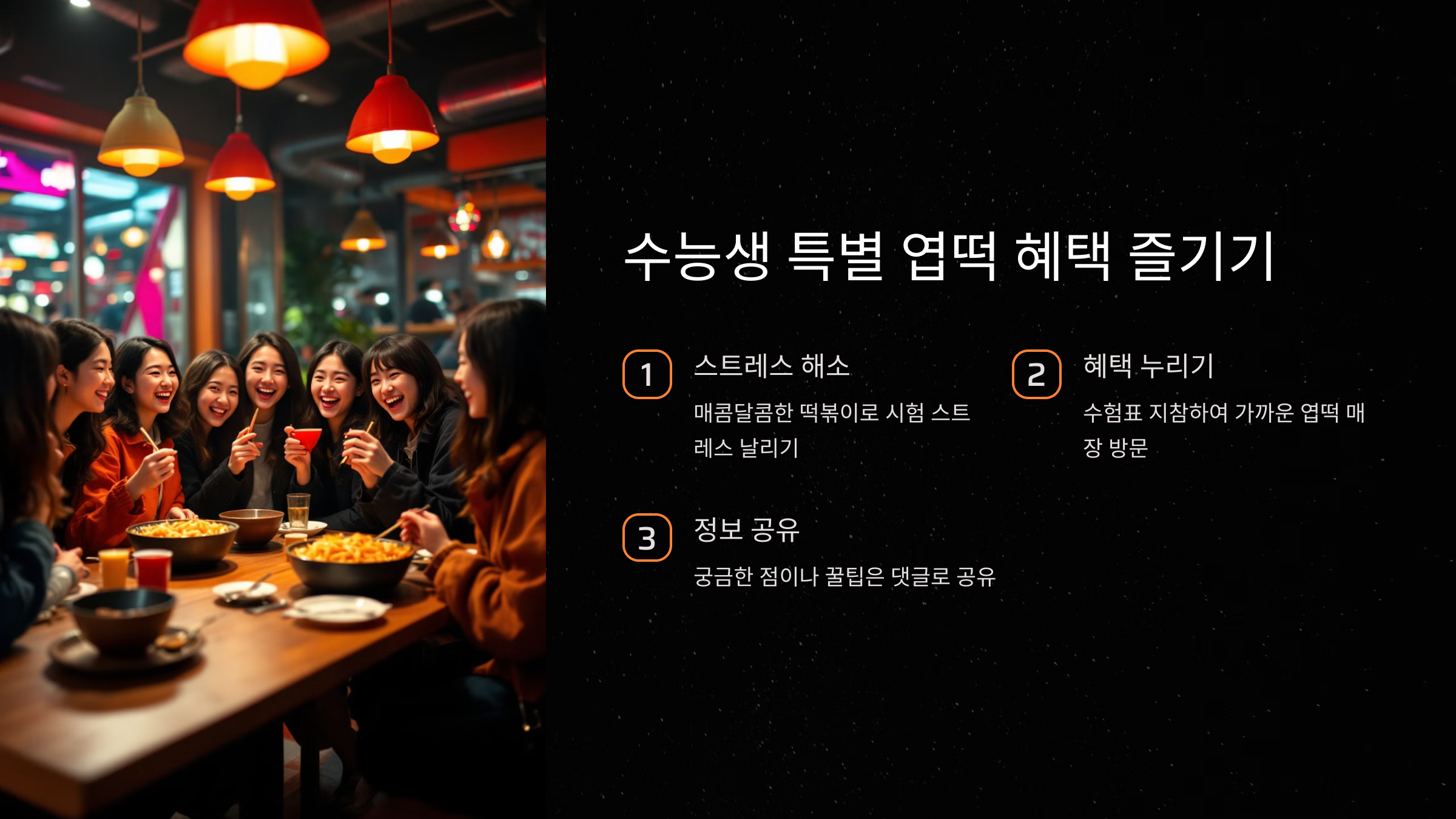 특히 매년 수능 시즌에는 엽떡에서 수험생들을 위한 특별 무료 이벤트와 할인 혜택을 제공한다는 사실, 알고 계셨나요?