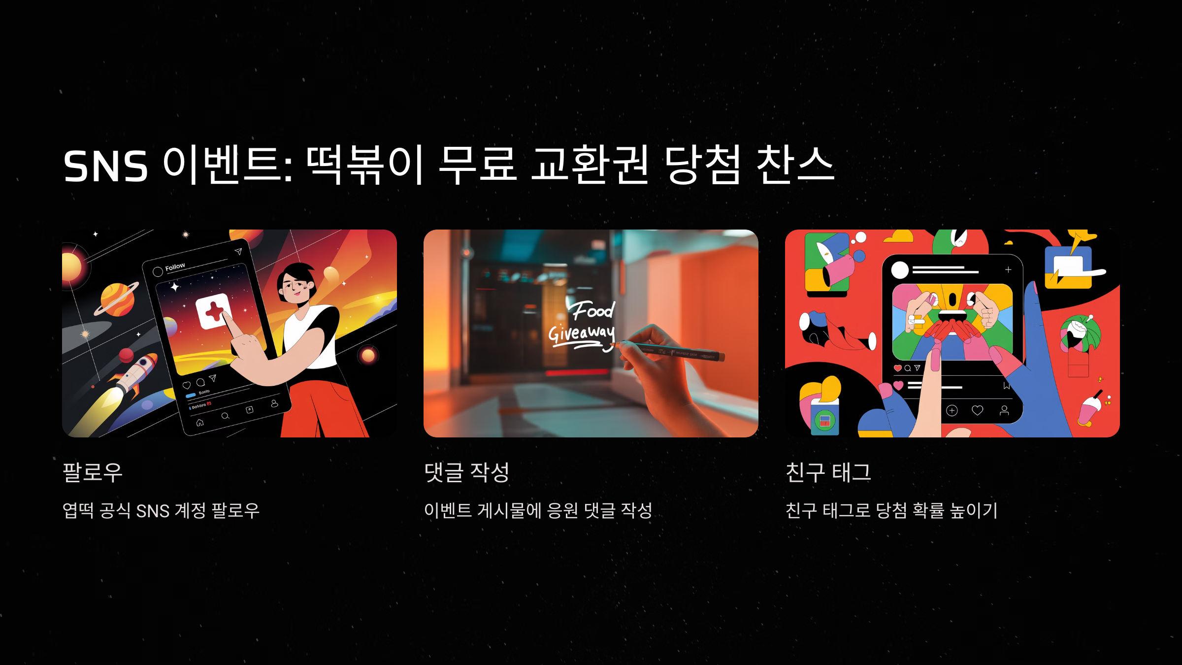 - 엽기떡볶이 공식 인스타그램/페이스북 팔로우.